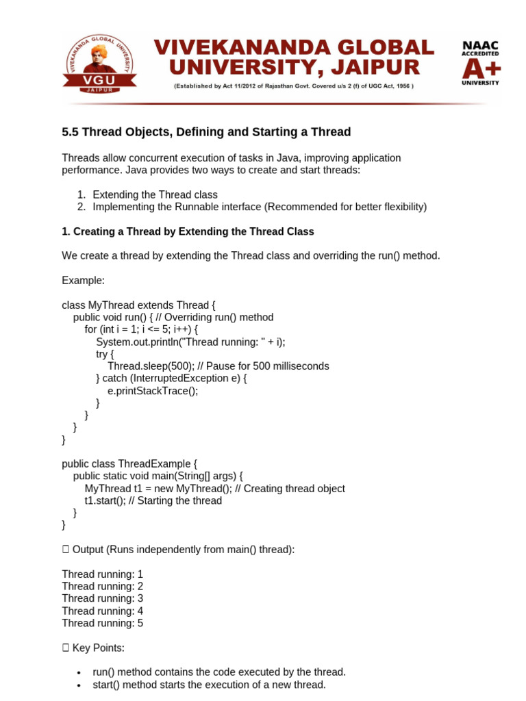 5 Thread Objects, Defining and Starting a Thread