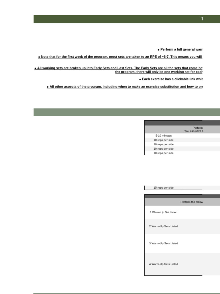 ● Note that for the first week of the program, most sets are taken to an RPE of ~6-7. This means you will be leaving 3