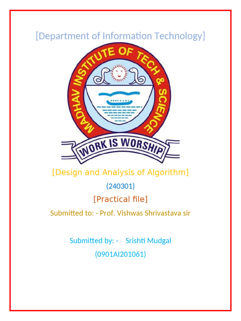 Submitted to: - Prof. Vishwas Shrivastava sir