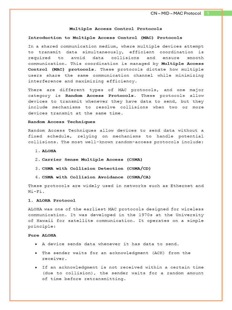 ALOHA was one of the earliest MAC protocols designed for wireless