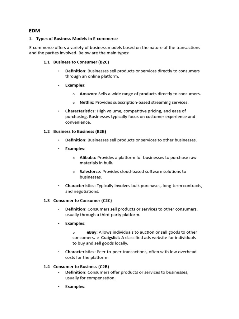 E-commerce offers a variety of business models based on the nature of the transactions