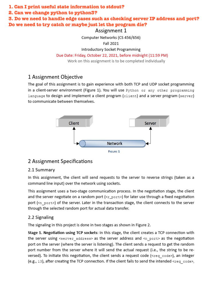 in a client-server environment (Figure 1). You will use Python or any other programming