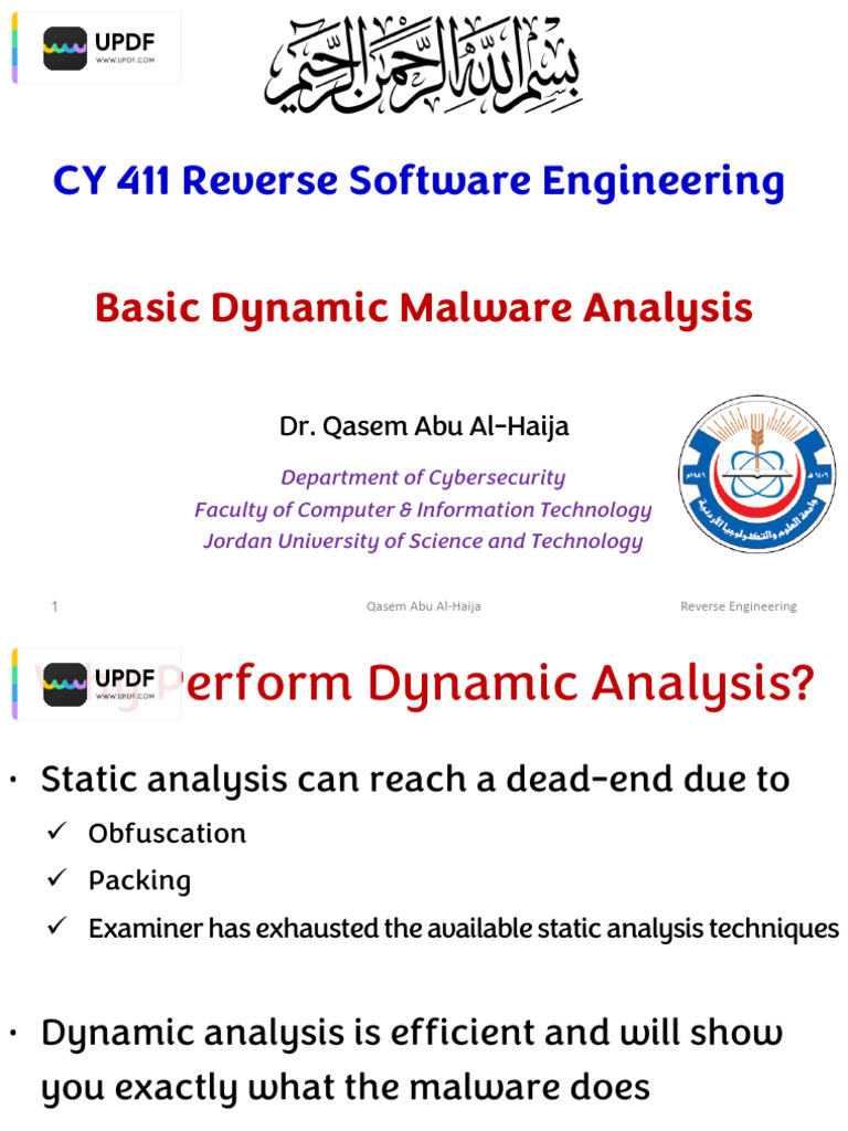 • Xinwen Fu, “Introduction to Malware Analysis,” University of