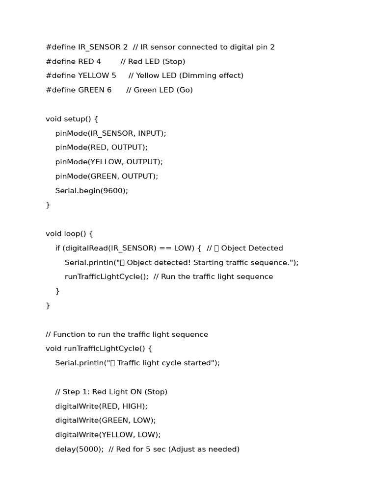 Serial.println("🚗 Object detected! Starting traffic sequence.");