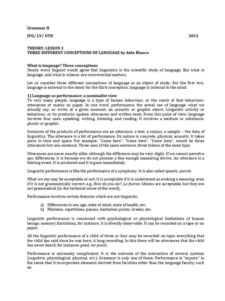 THREE DIFFERENT CONCEPTIONS OF LANGUAGE by Aldo Blanco