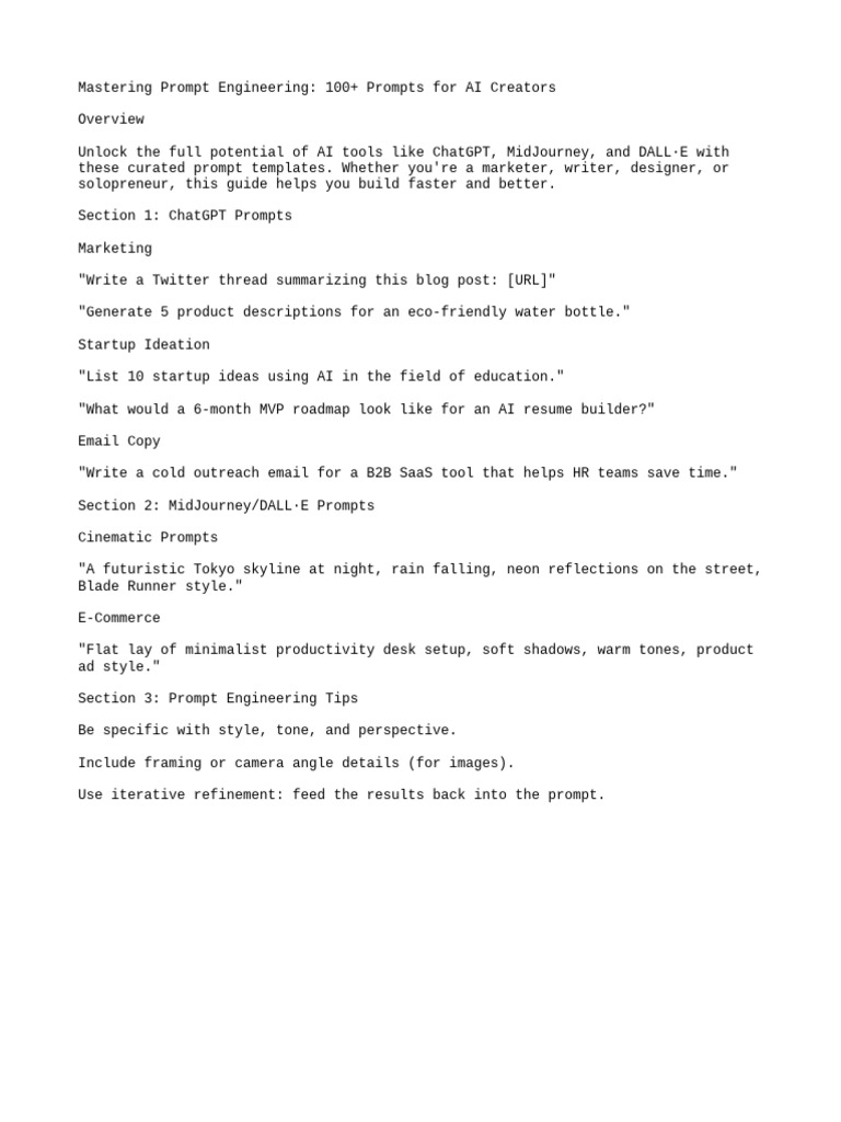 Mastering Prompt Engineering: 100+ Prompts for AI Creators
