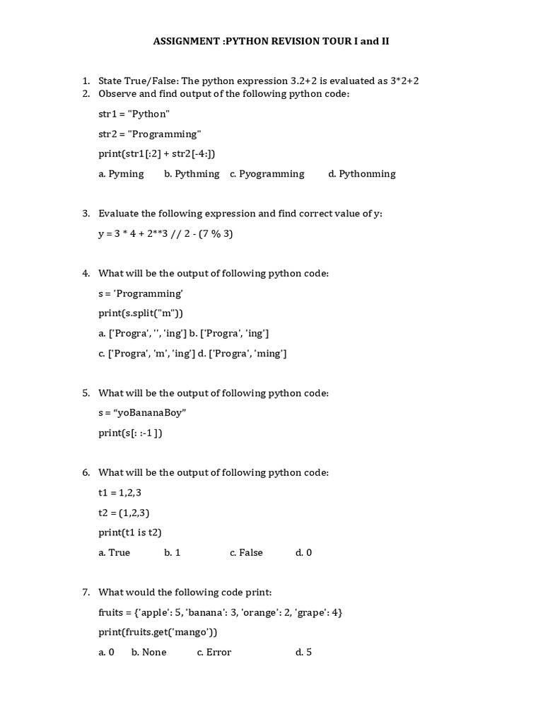 ASSIGNMENT :PYTHON REVISION TOUR I and II