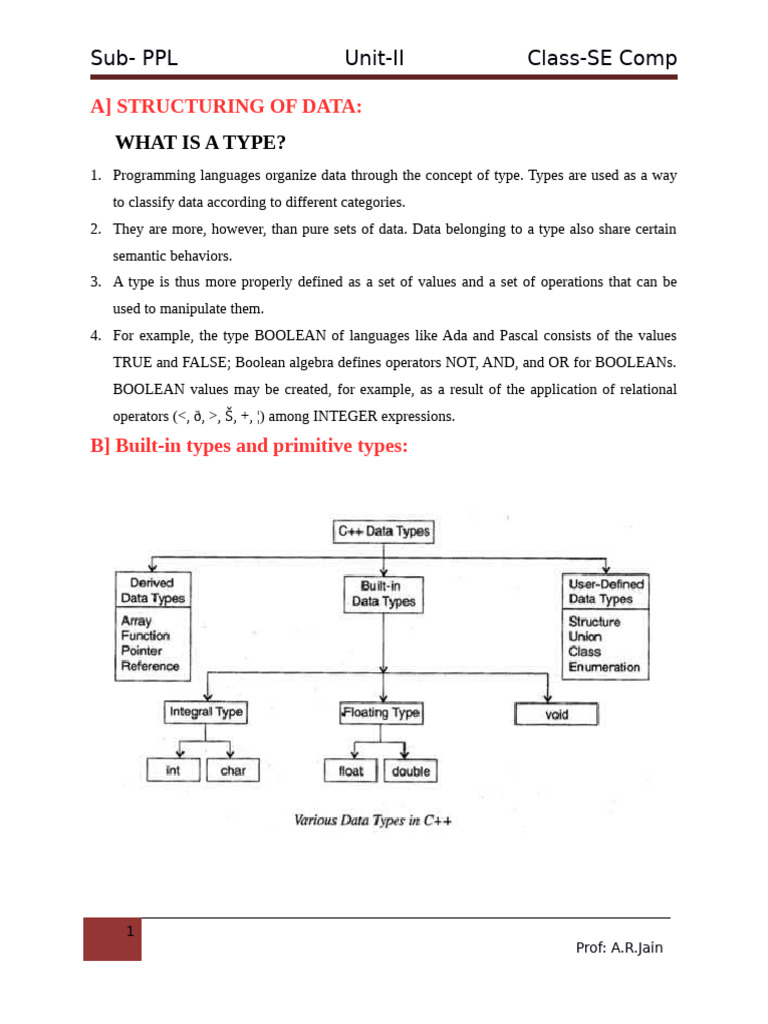 1. Programming languages organize data through the concept of type. Types are used as a way