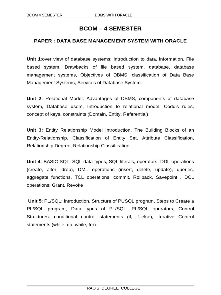 Unit 4: BASIC SQL: SQL data types, SQL literals, operators, DDL operations