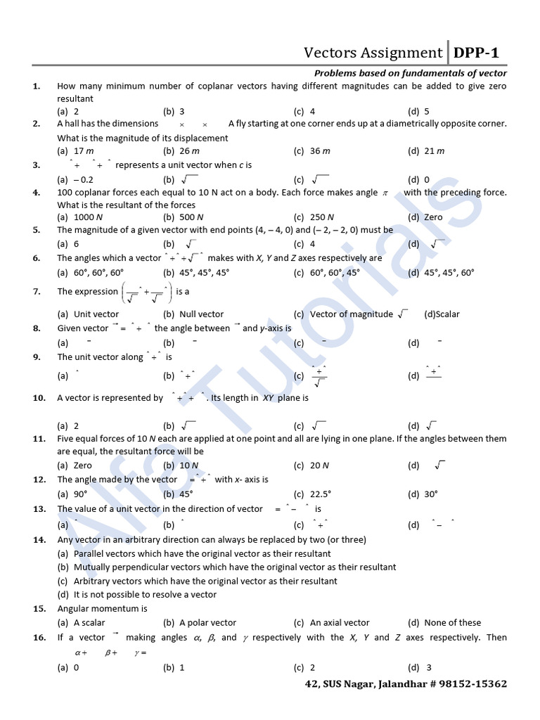 Vectors Assignment DPP-1