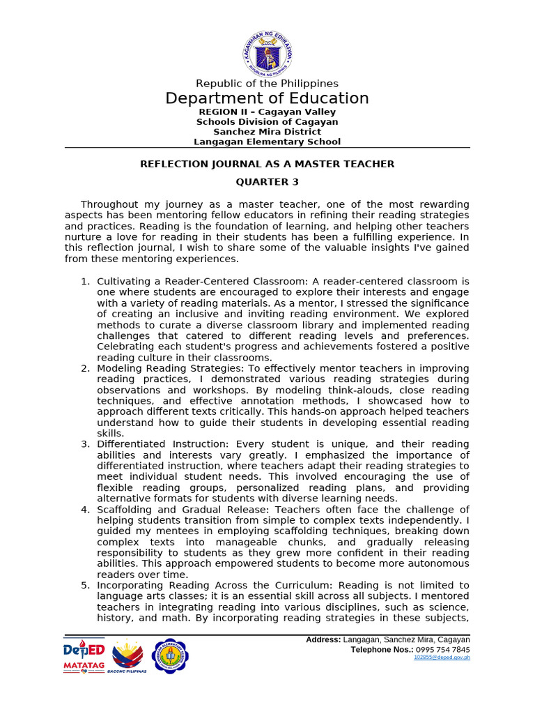 REFLECTION JOURNAL AS A MASTER TEACHER