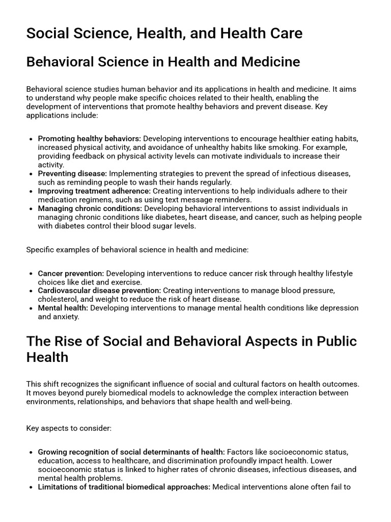 Behavioral science studies human behavior and its applications in health and medicine. It aims