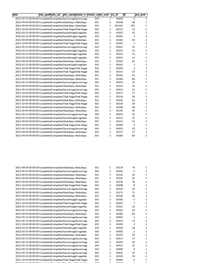 date edu_qualf edu_cat phc_namecluster_n cluster_co int_cont un_id ID pre_post