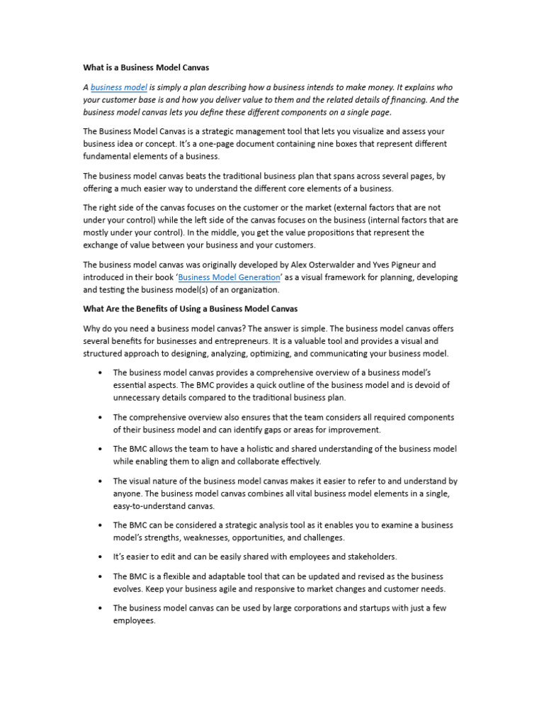 essen al aspects. The BMC provides a quick outline of the business model and is devoid of