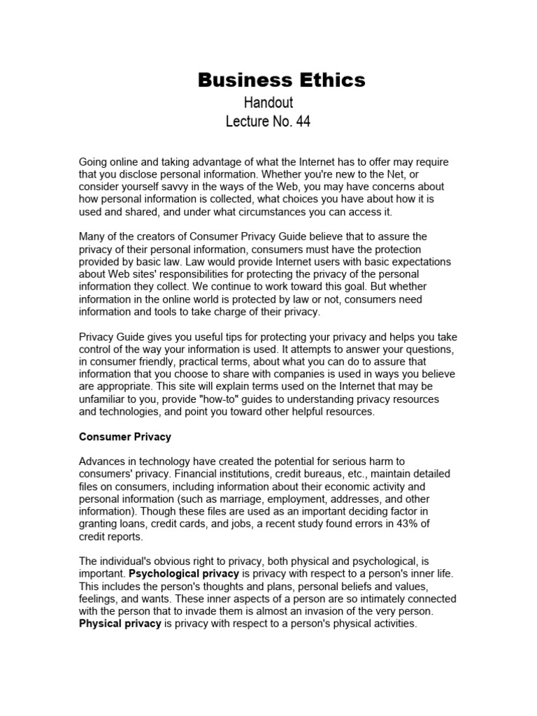 consumers' privacy. Financial institutions, credit bureaus, etc., maintain detailed