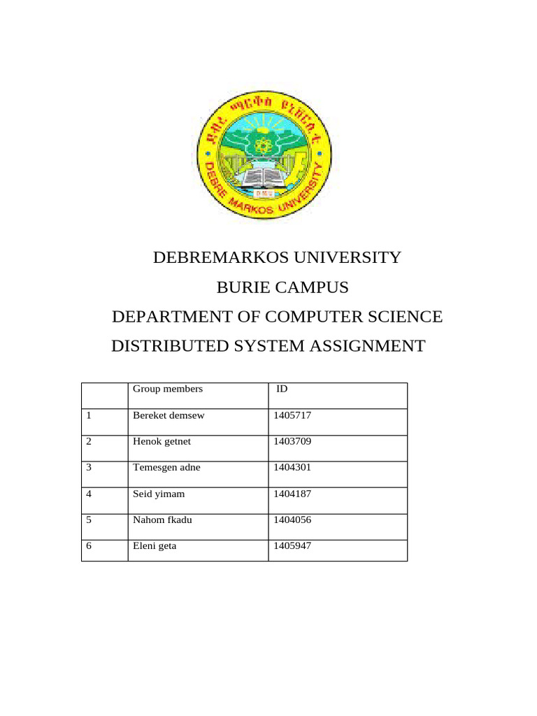 DISTRIBUTED SYSTEM ASSIGNMENT
