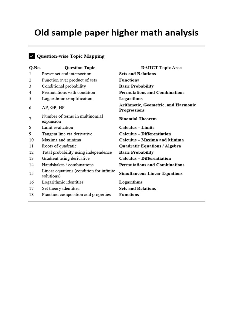two sample papers you provided, match them against the DAIICT official syllabus topics,