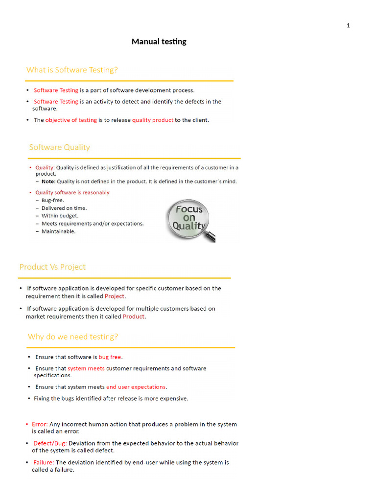 1. Manual testing :- Manual testing includes testing a software manually, i.e., without using any automated