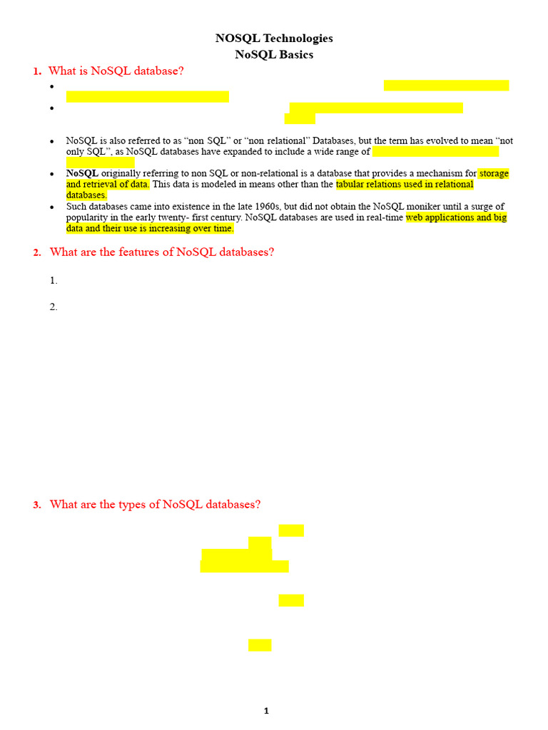 • NoSQL is also referred to as “non-SQL” or “non-relational” Databases, but the term has evolved to mean “not