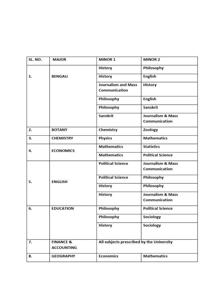 SL. NO. MAJOR MINOR 1 MINOR 2