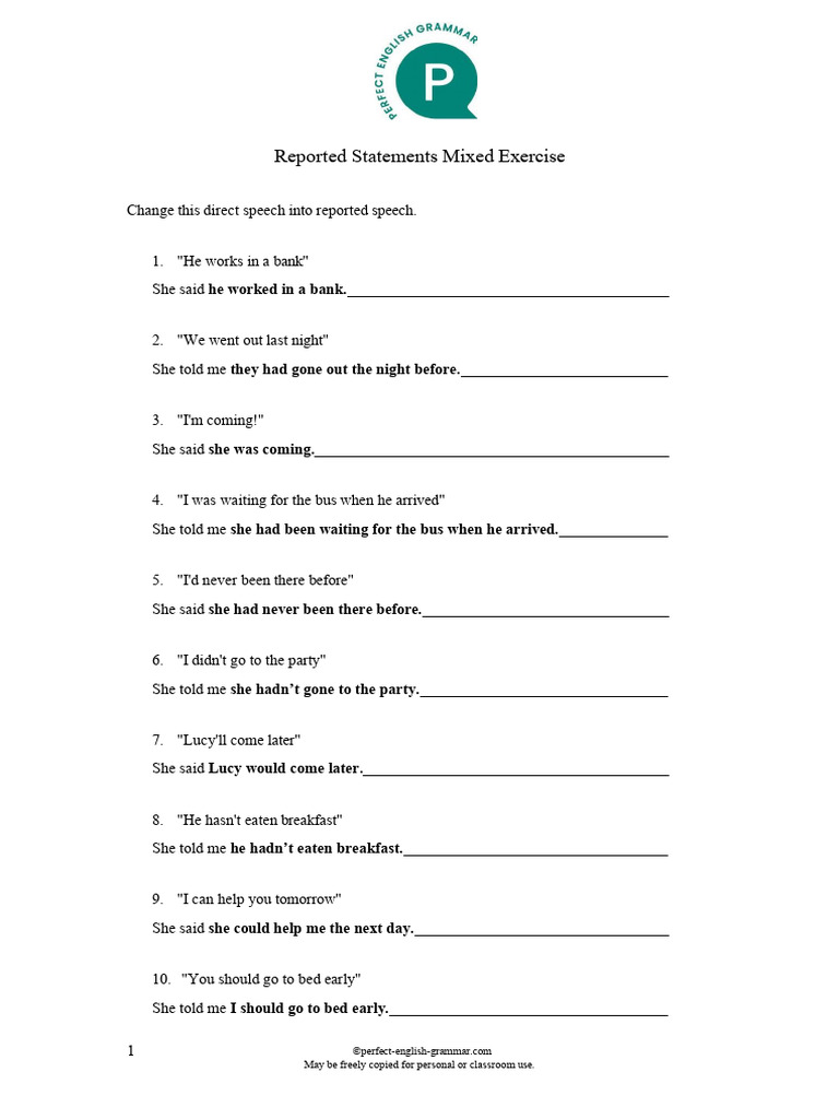 Reported Statements Mixed Exercise