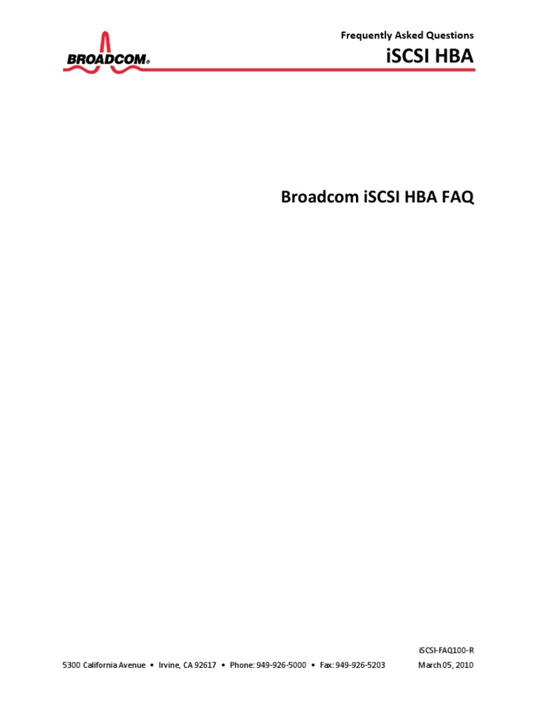 5300 California Avenue Irvine, CA 92617 2010 by BROADCOM CORPORATION. All rights reserved. iSCSI-FAQ100-R March 05, 2010