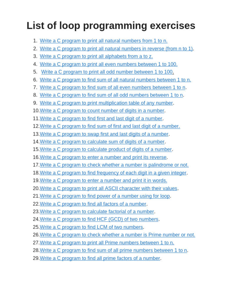 List of loop programming exercises