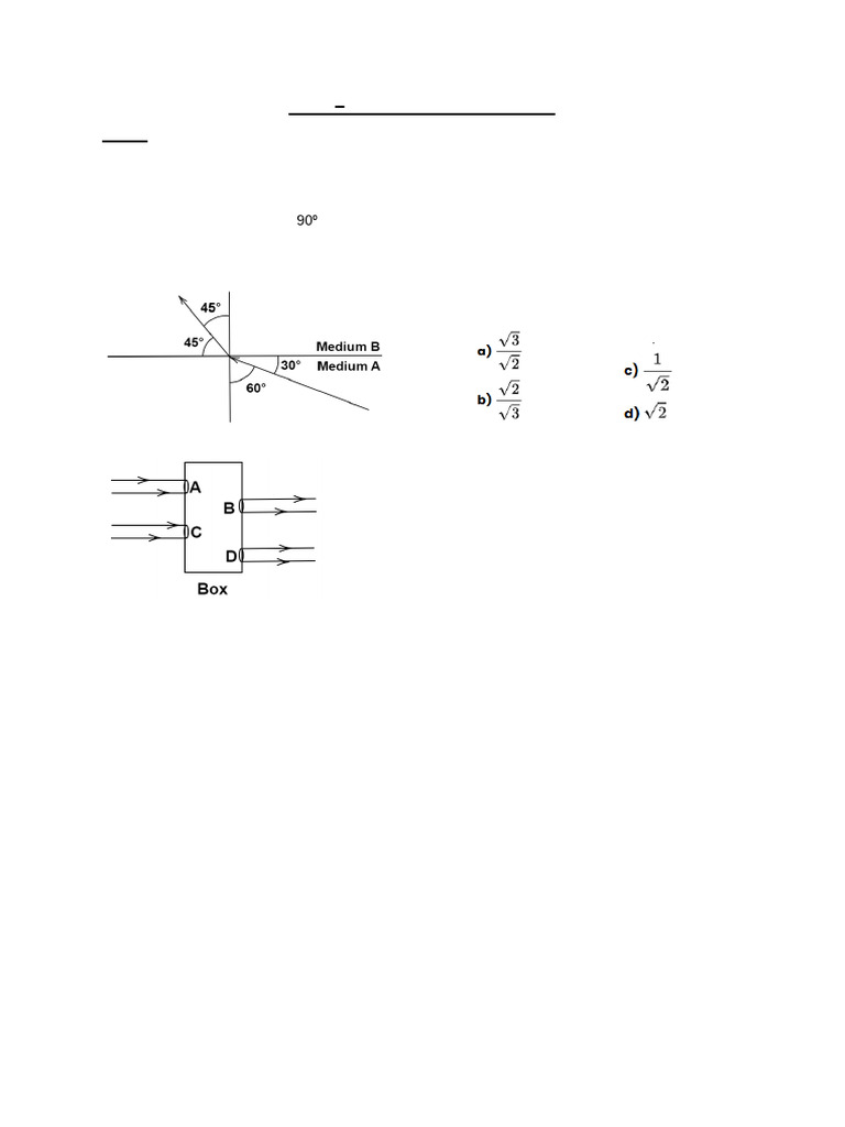 2) The below figure shows a ray of light as it travels from medium A to medium B. Refractive index of