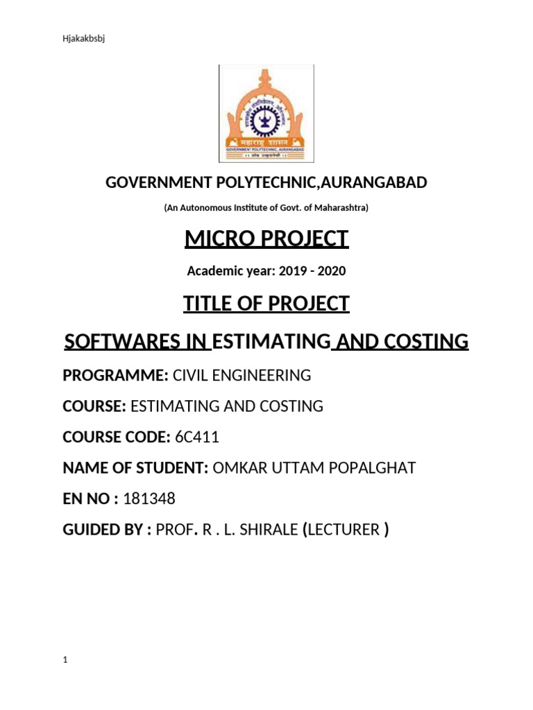 Estimating and costing (6C411) for the academic year 2020 - 2021 as prescribed in