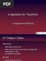 universal grammar, syntax, semantics, phonology, and morphology. Linguists create models to explain
