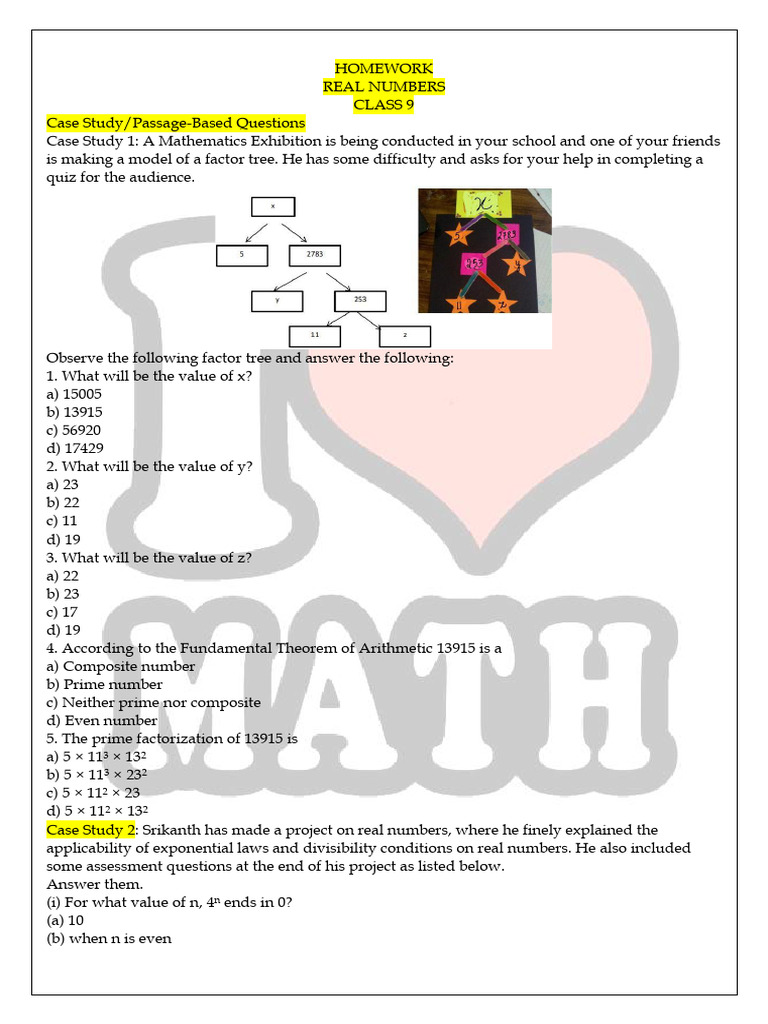 Case Study 2: Srikanth has made a project on real numbers, where he finely explained the