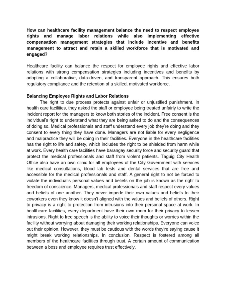 health care facilities, they asked the staff or employee being treated unfairly to write the