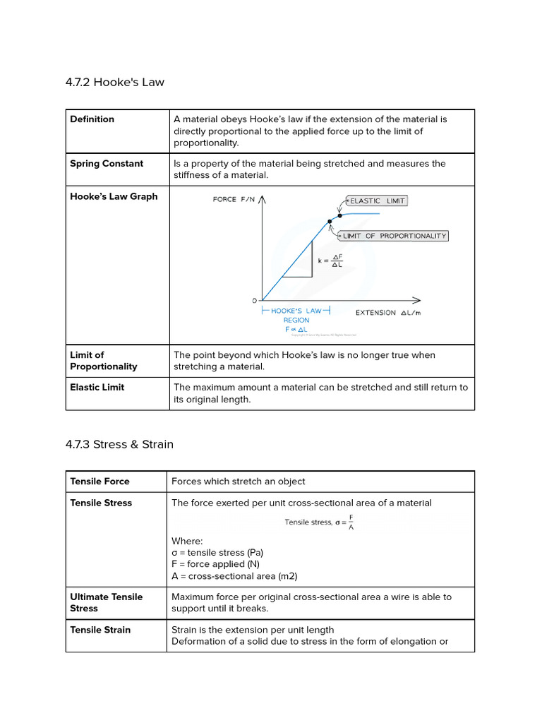 Exam Tip Avoid describing plastic deformation as 'does not obey Hooke's