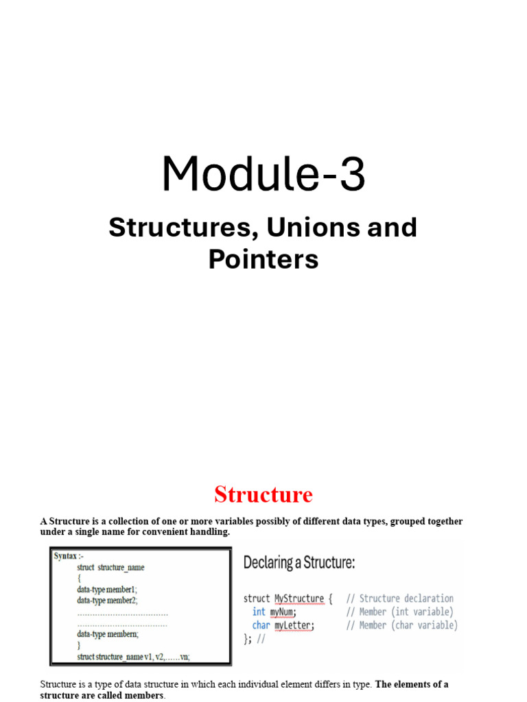 Structure is a type of data structure in which each individual element differs in type. The elements of a