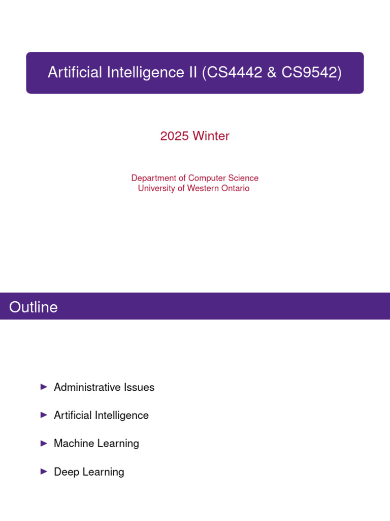 Artificial Intelligence II (CS4442 & CS9542)
