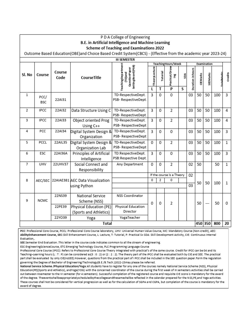 4 PCC 22AI34 Digital System Design & TD-RespectiveDept. 3 0 0 03 50 50 100 3