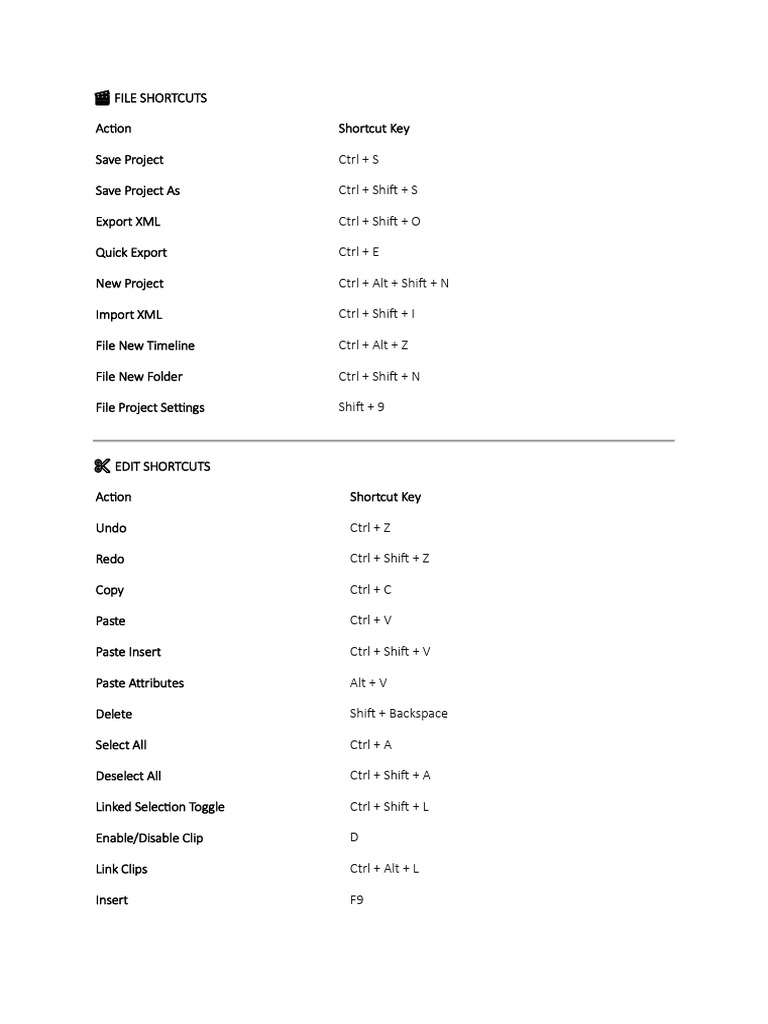 Delete Gaps Helps close unwanted blank spaces in the timeline Ctrl + Delete