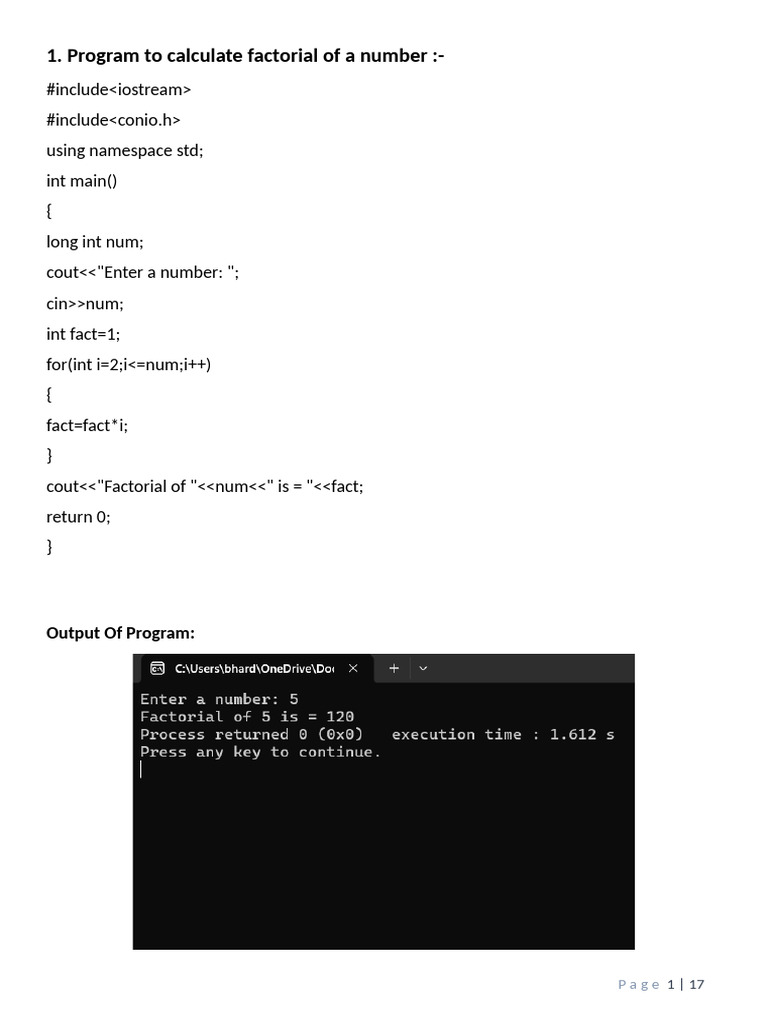 cout<<"Factorial of "<<num<<" is = "<<fact;