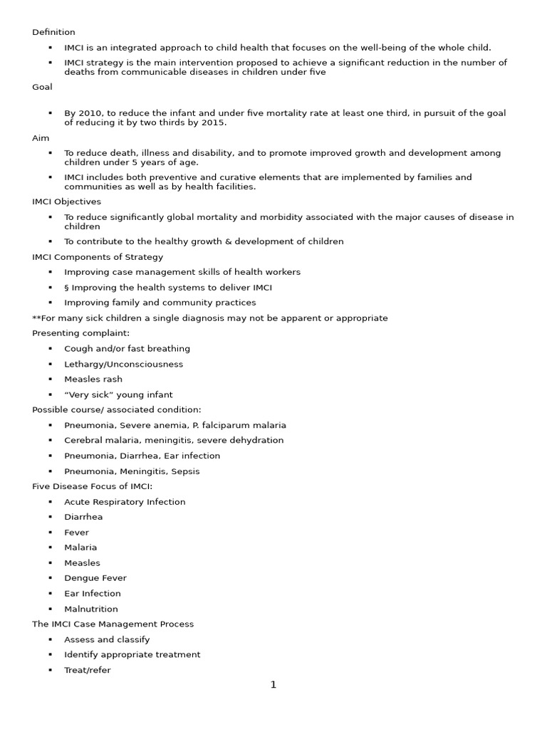 Five Disease Focus of IMCI: