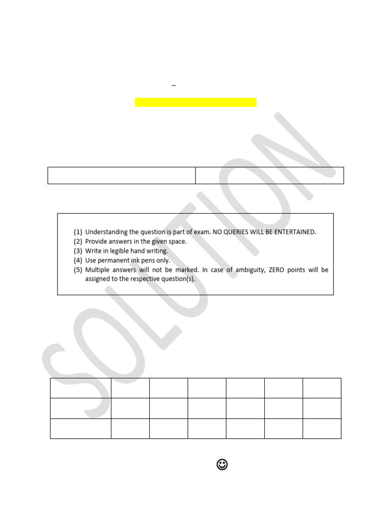 (1) Understanding the question is part of exam. NO QUERIES WILL BE ENTERTAINED.