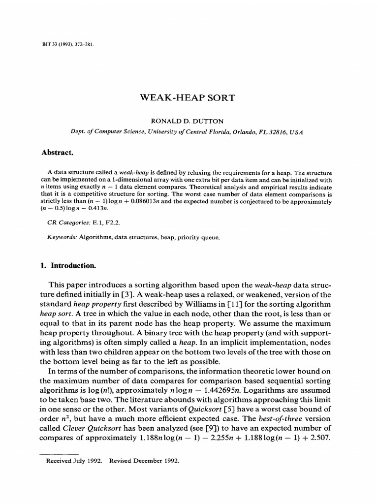 3. R.D. Dutton, The weak-heap data structure, Department of Computer Science Technical Report,