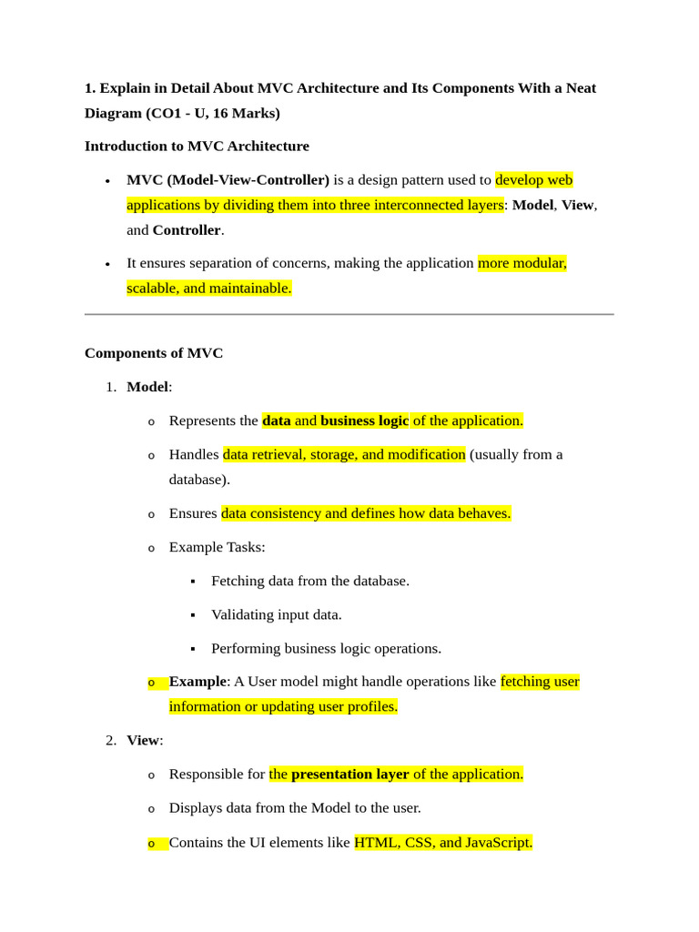 Explain in Detail About MVC Architecture and Its Components With a Neat
