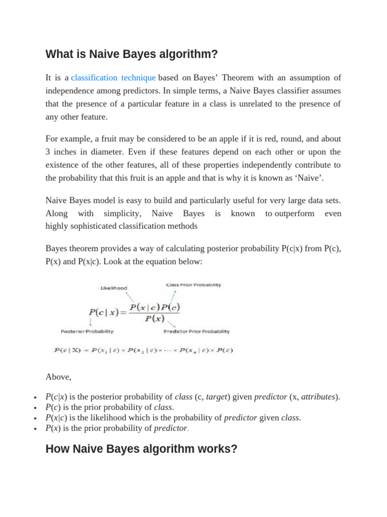 The Naïve Bayes algorithm is comprised of two words Naïve and