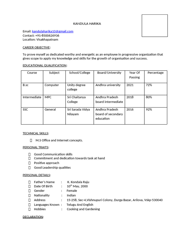 I hereby declare that the above information is true to the best of my knowledge and I owe that I will