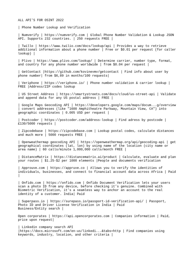 | Veriphone | https://veriphone.io/ | Phone number validation & carrier lookup |