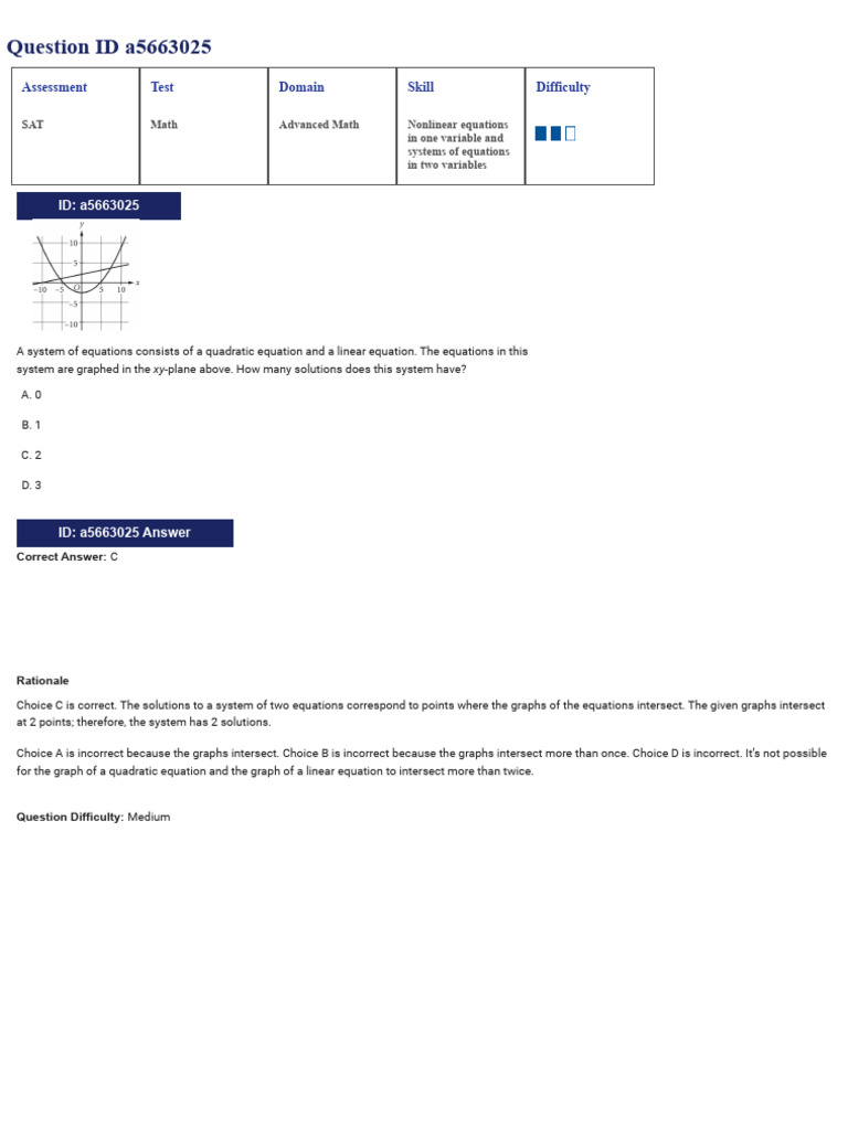 true statement. Choice D is incorrect. Substituting for x and for y in the second equation yields , or