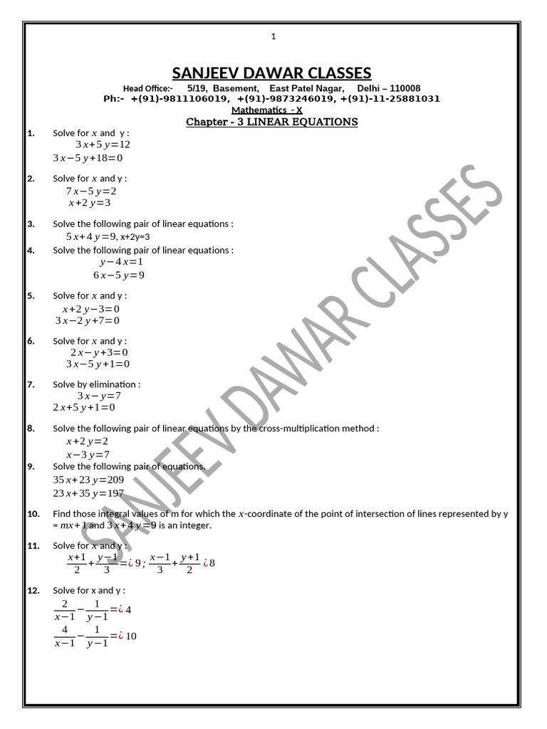 8. Solve the following pair of linear equations by the cross-multiplication method :