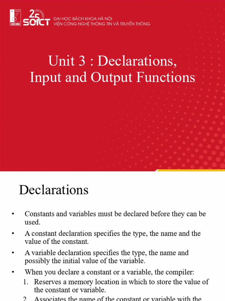 Unit 3 : Declarations,