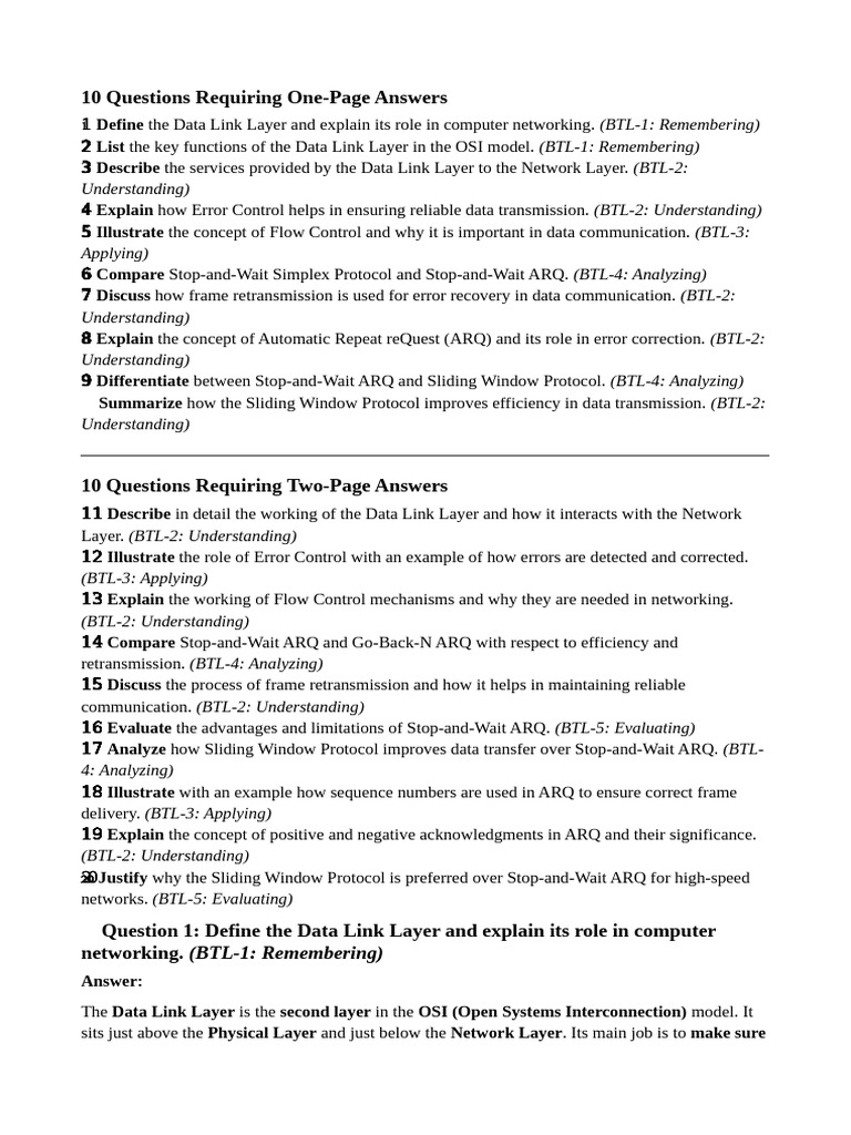 11️⃣Define the Data Link Layer and explain its role in computer networking. (BTL-1: Remembering)