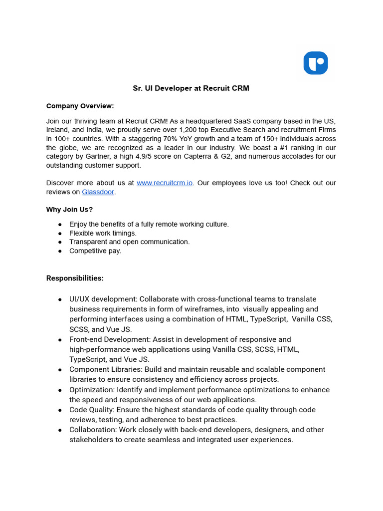 Join our thriving team at Recruit CRM! As a headquartered SaaS company based in the US,